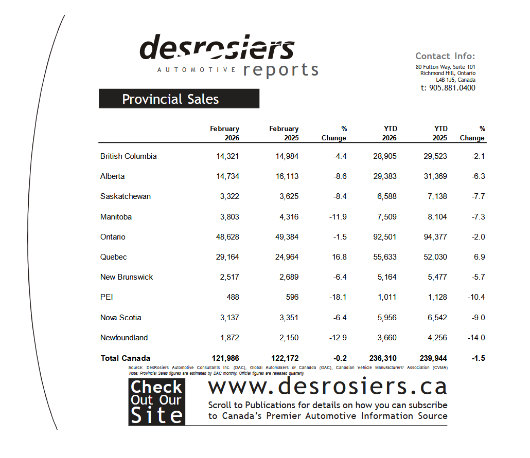 Provincial Sales February 2026