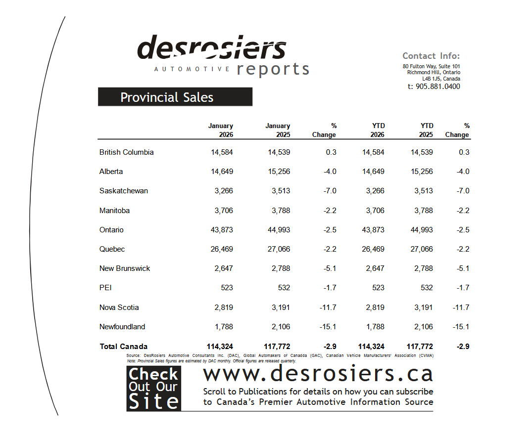 Provincial Sales January 2026